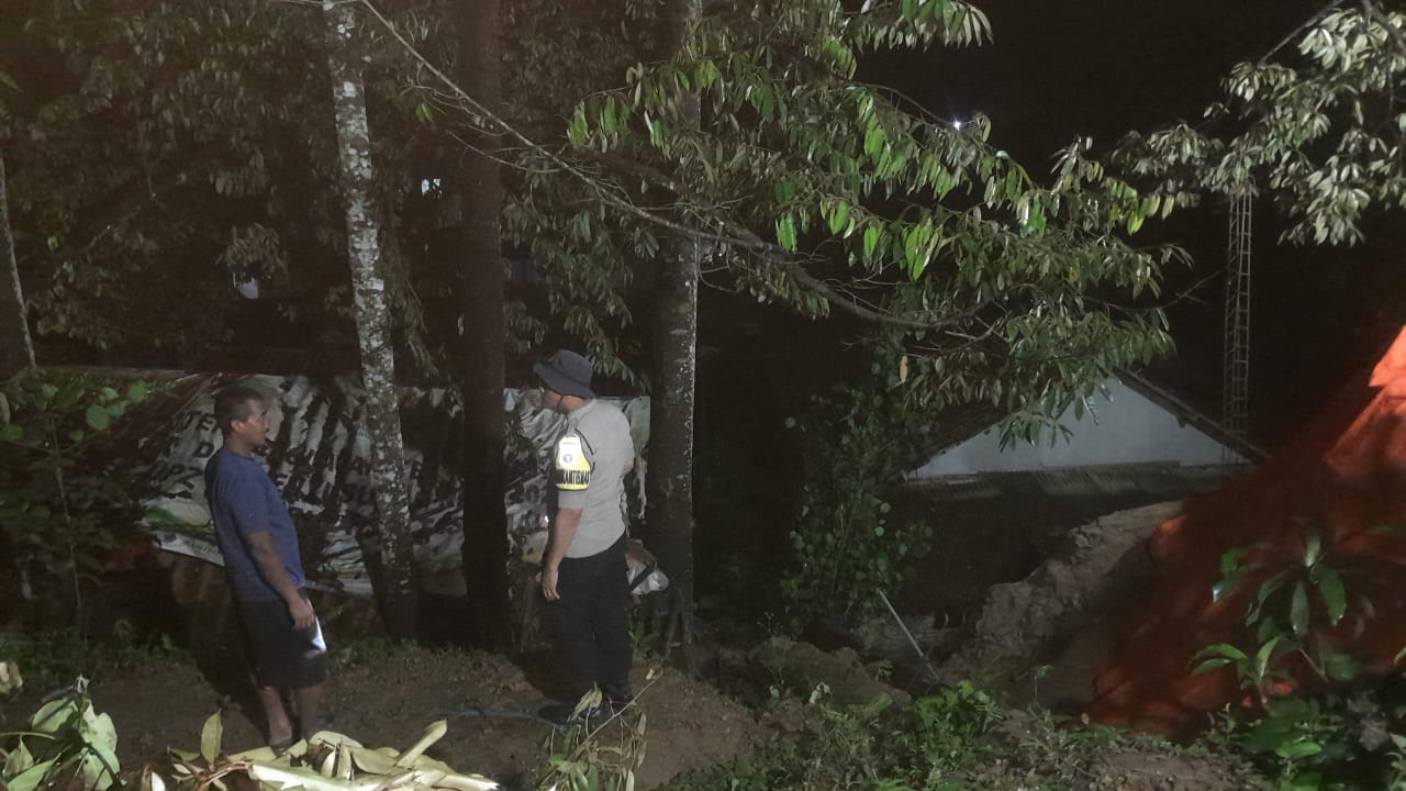 Bencana alam tanah longsor melanda wilayah Dusun Kadupugur RT.035 RW.017, Desa Gunungcupu, Kecamatan Sindangkasih, Kabupaten Ciamis, Jawa Barat, pada Minggu (2/11/2025). Personel Polsek Cikoneng Polres Ciamis Polda Jabar segera mendatangi lokasi kejadian untuk membantu evakuasi dan pendataan.