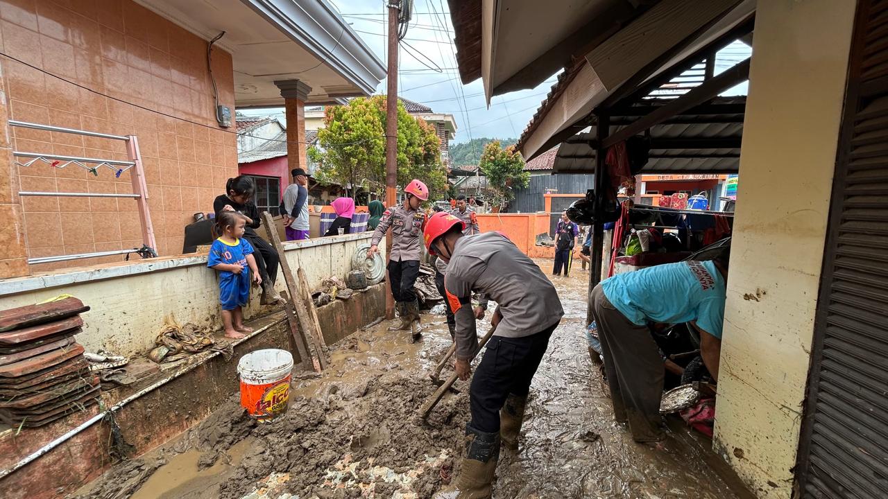 Dengan menggunakan peralatan SAR yang lengkap, personel Brimob bahu-membahu dengan warga membersihkan lumpur dan material sisa banjir yang menutupi rumah-rumah dan fasilitas umum. Semangat gotong royong dan kebersamaan tampak jelas dalam setiap kegiatan yang dilakukan.