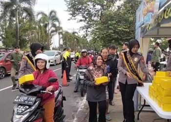Sejak sore hari, suasana di sekitar depan Mapolres tampak berbeda dari biasanya. Personel kepolisian berbaris rapi dengan menyebar senyum ramah kepada setiap pengendara roda dua maupun roda empat.