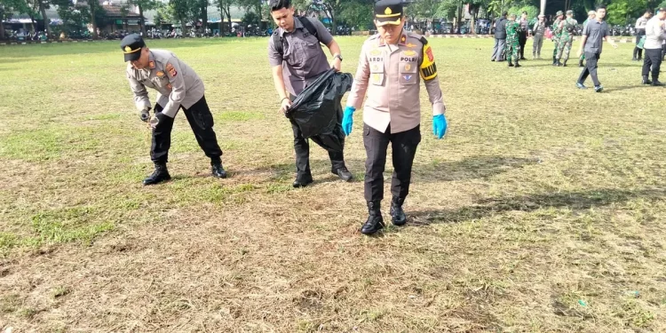 Wujudkan Lingkungan Sehat, Polres Cianjur Pimpin Aksi Bersih-Bersih Masif di Lapangan Prawatasari